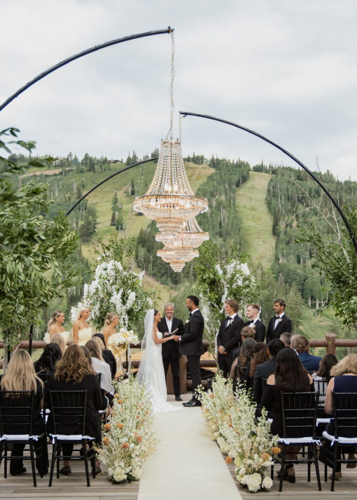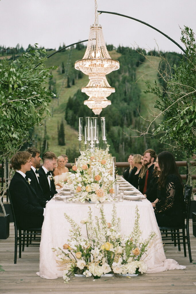 Nestled in the heart of Utah’s Wasatch Mountains lies the luxurious Stein Eriksen Lodge. The rugged mountains and graceful slopes surrounding the lodge provided a stunning backdrop for our “Chanel Meets Château” destination wedding experience. Throughout the planning process, we focused on two words: timeless design. At its core, Stein Eriksen Lodge offers timeless luxury. Chanel is synonymous with timeless style. We leaned into the juxtaposition of each powerful beauty.